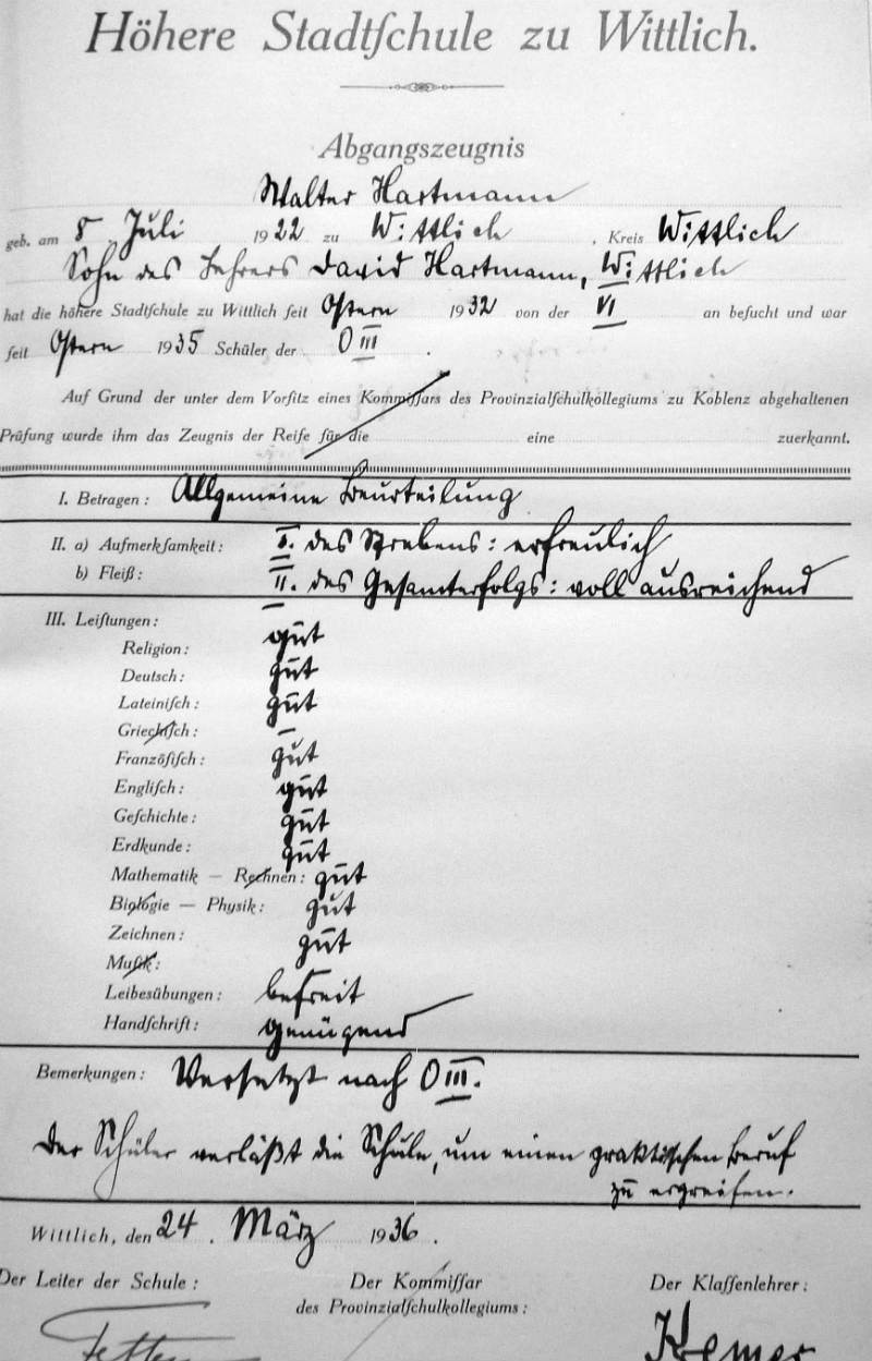 Die jüdischen Eltern nutzten für ihre Kinder die in Wittlich vorhandenen Möglichkeiten, eine höhere Bildung zu erlangen. Dies galt zunächst für die Höhere Stadtschule Wittlich, die 1861 eröffnet wurde. Diese war aber nur für Knaben zugänglich. Für die Mädchen ergab sich die Möglichkeit erst durch die Höhere Mädchenschule Wittlich, die 1904 eröffnet wurde. Bevor 1922 die Aufbauschule (später Cusanus-Schule, heute Cusanus-Gymnasium) gegründet wurde, gingen einzelne jüdische Schüler auch auf Gymnasien in Trier. Bis zur NS-Zeit besuchten jüdische Jungen und Mädchen die Cusanus-Schule. Zuständig für den Religionsunterricht war David Hartmann, der auch Wert darauf legte, dass die Schüler an Feiertagen vom Schulunterricht befreit waren.