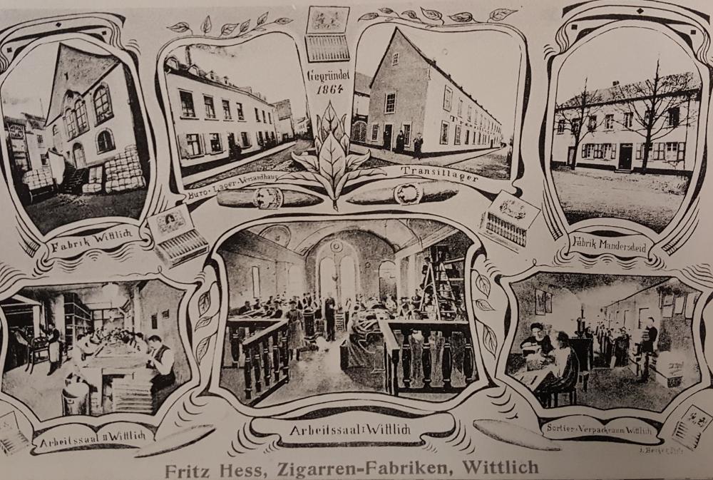 Das milde Klima im Wittlicher Tal ermöglicht bis heute den Anbau von Tabak. Mit ein Grund, warum in Wittlich schon sehr früh Tabak zu Zigarren verarbeitet wurde. Das Bild des Morbacher Malers Wilhelm Terwei (1875-1946) hat diese Produktion zum Inhalt. Er hat es 1936 gemalt. Es zeigt die Zigarrenfabrik von Bernhard Felzen, der noch bis ca 1950 Zigarren herstellte und verdeutlicht gut die Arbeitsprozesse einer Zigarrenfabrik. Unter den Tabakfariken gab es Anfang des 20. Jahrhunderts auch eine Reihe jüdischer Betriebe.